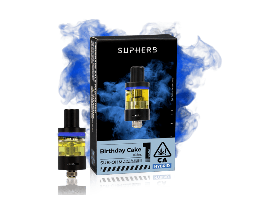 Supherb has another way for you to have your birthday cake and eat it too! The Supherb premium THC Birthday Cake concentrate tastes as good as homemade cake. Our 3x distilled concentrate is a proprietary blend that mixes the terpenes from Girl Scout Cookies and Cherry Pie to deliver a smoother, richer throat hit with no embarrassing cough. Our innovative, patent pending adjustable air flow system makes for the most convenient, and smartest way to enjoy your cannabis cake. Just like any dessert, the Supherb premium THC Birthday Cake is the perfect way to end your day. Our blend has a cake-like flavor that is known for sedating the body, but not the mind. Supherb Birthday Cake is an Indica-dominant hybrid that is desired by many for treating pain, anxiety, appetite loss, inflammation and headaches.
